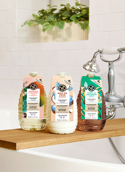 Экологически упакованный гель для душа при контакте с водой превращается в легкую пенистую текстуру и мягко очищает кожу своим приятным ароматом. Он полностью совместим со значением pH вашей кожи. Благодаря сертификации Ocean Bond Plastic используется 90% переработанного пластика, собранного с берега, который содержит в 4 раза меньше пластика, чем 400 мл геля для душа.