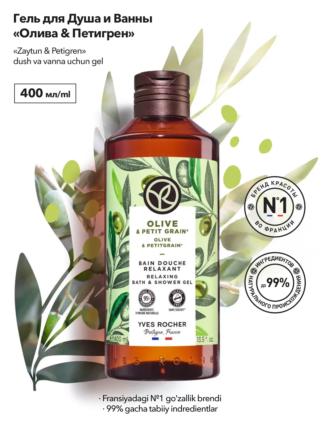 Прикоснитесь к самой природе с этим гелем для душа с пленительным ароматом и формулой без сульфатов. Аромат: чтобы подарить вам мгновения безмятежного отдыха, мы в Ив Роше выбрали солнечную Оливу и эфирное масло Петигрена из бассейна Средиземного моря. Полученное путем дистилляции листьев и ветвей померанцевого дерева, это масло традиционно используется благодаря своим расслабляющим свойствам. Его цветочный аромат, пленительный и одновременно тонизирующий, помогает забыть о повседневных заботах и насладиться моментом истинного умиротворения.