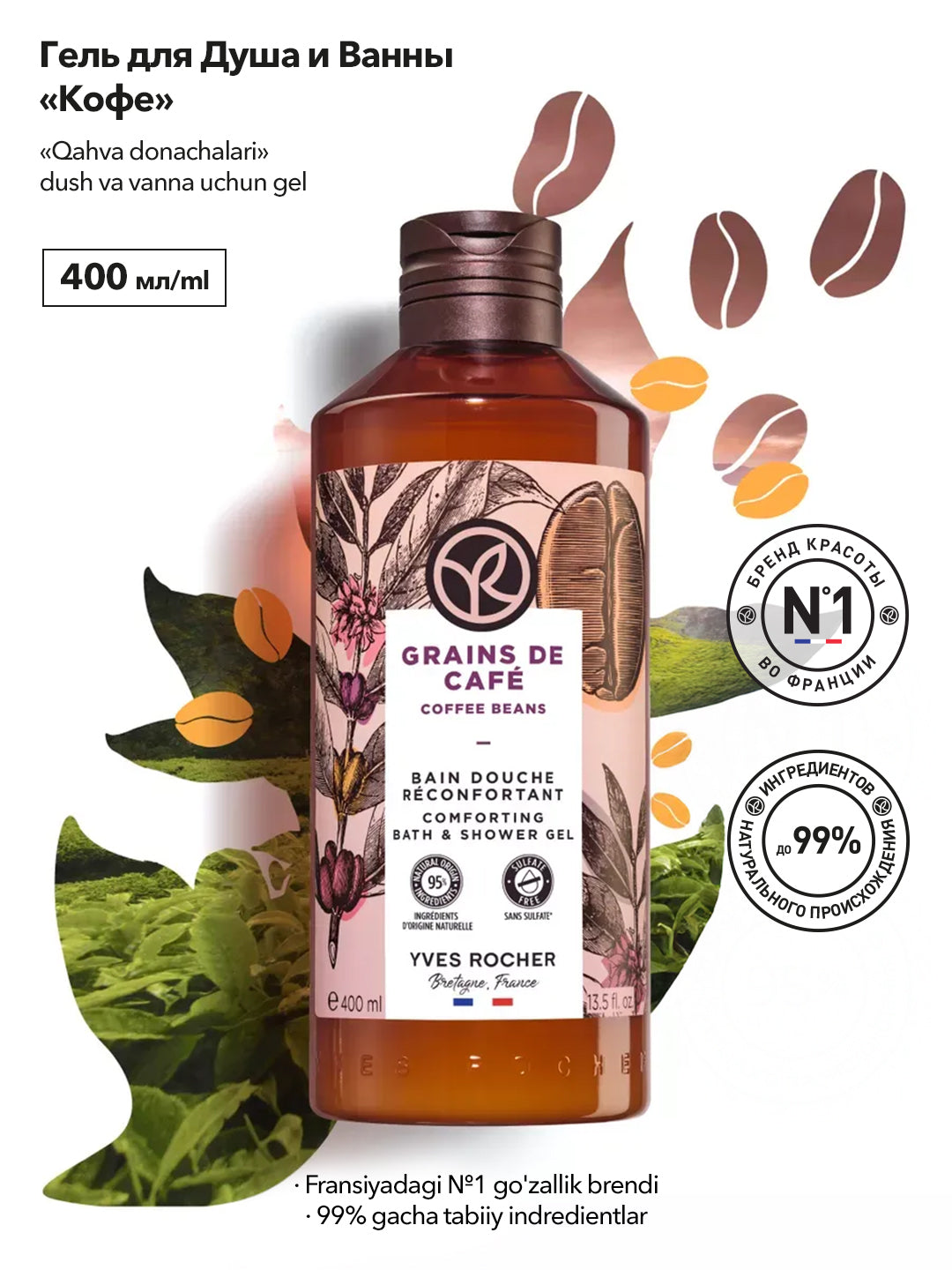 Прикоснитесь к самой природе с этим гелем для душа с пленительным ароматом и формулой без сульфатов. Аромат: мы в Ив Роше выбрали Кофе за его яркий и бодрящий запах. Эти глубокие, изысканные ноты словно приглашают вас прогуляться среди раскидистых кофейных деревьев.