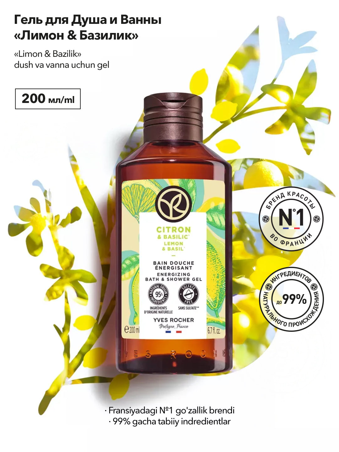 Формула без сульфатов и красителей, с чарующим ароматом природы. Аромат : Именно под средиземноморским солнцем Ив Роше выбрали эссенцию лимона за ее стимулирующие и заряжающие энергией ноты. Его пикантная бодрость и спонтанные, бодрящие ноты придают аромату живую, шипучую свежесть. Наши ботаники объединили его с бодрящими и оживляющими ароматическими нотами базилика. Вместе они скрасят ваше утро своим благотворным ароматом.