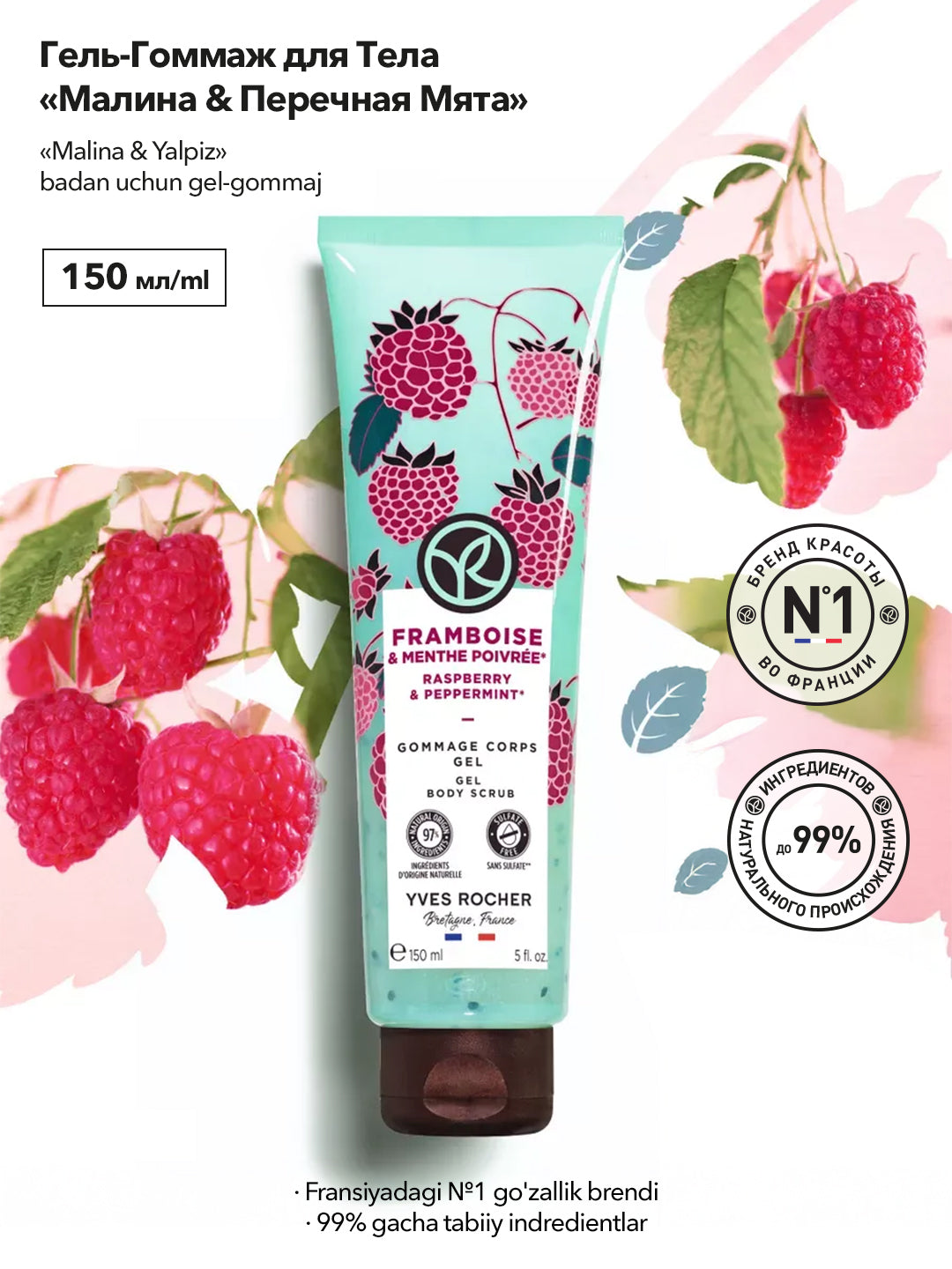 Гель-Гоммаж для Тела «Малина & Перечная Мята», 150мл