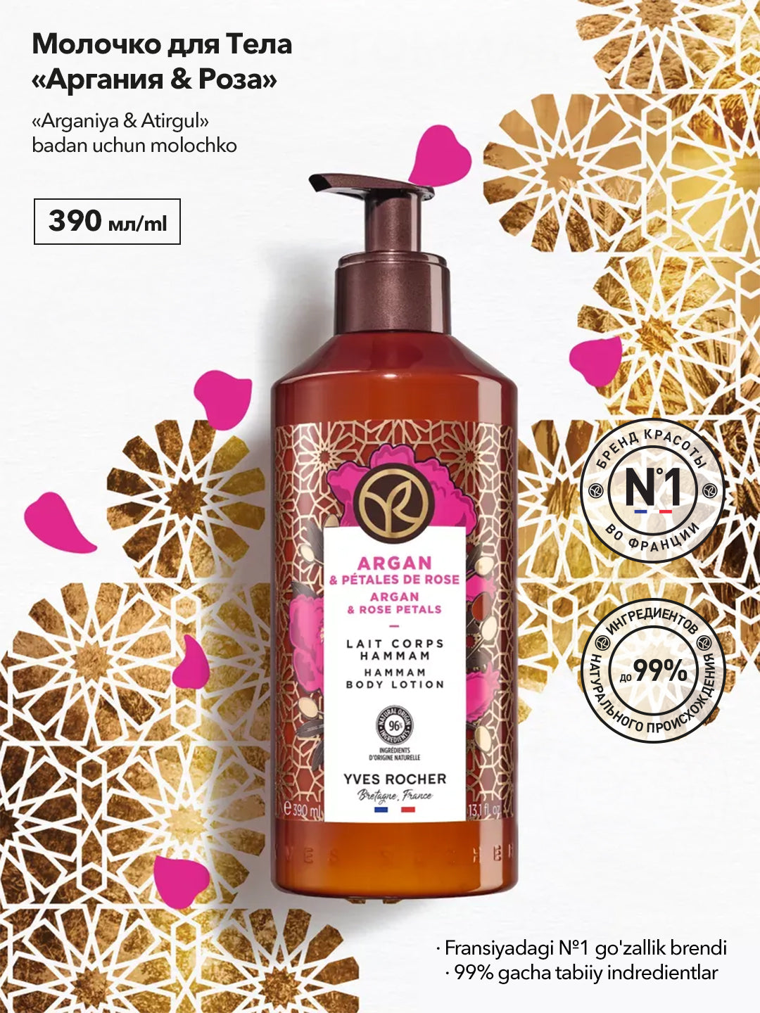 Молочко, обогащенное аргановым маслом и БИО-экстрактом марокканской розы, эффективно увлажняет сухую кожу тела, расслабляет и в течение длительного времени дарит тонкий цветочный аромат. Рекомендации по применению: нанесите небольшое количество молочка на тело и втирайте массажными движениями до полного впитывания средства.