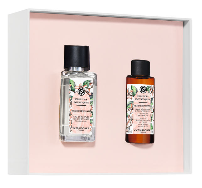 Откройте для себя парфюмерный дуэт продуктов Tendres Instants в подарочном наборе. Этот аромат словно заключает в мягкие объятия. В композиции Tendres Instants звучат обволакивающие ноты Мускуса и Ромашки, а в цветочном сердце – эфирное масло Нероли, известное своими успокаивающими свойствами.