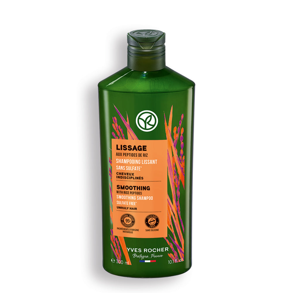 Обогащенный рисовыми пептидами разглаживающий шампунь без сульфатов расслабляет волокна и дисциплинирует волосы, не утяжеляя их. Фриз контролируется. Защищенные от влаги волосы эластичны и блестят.